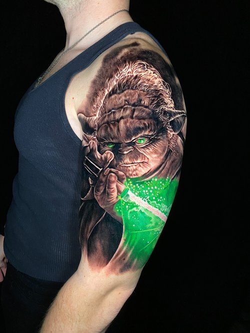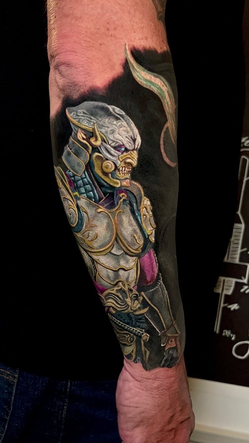 Specializing in vibrant color saturation and fine-line black & grey realism, I've developed an exceptional skill set, allowing me to bring a wide range of tattoo styles to life, including comic book, 3D art, space, sci-fi, realism, and surrealism. I'm committed to pushing the industry's boundaries, constantly striving to improve and innovate, while always honoring tattooing's traditions.